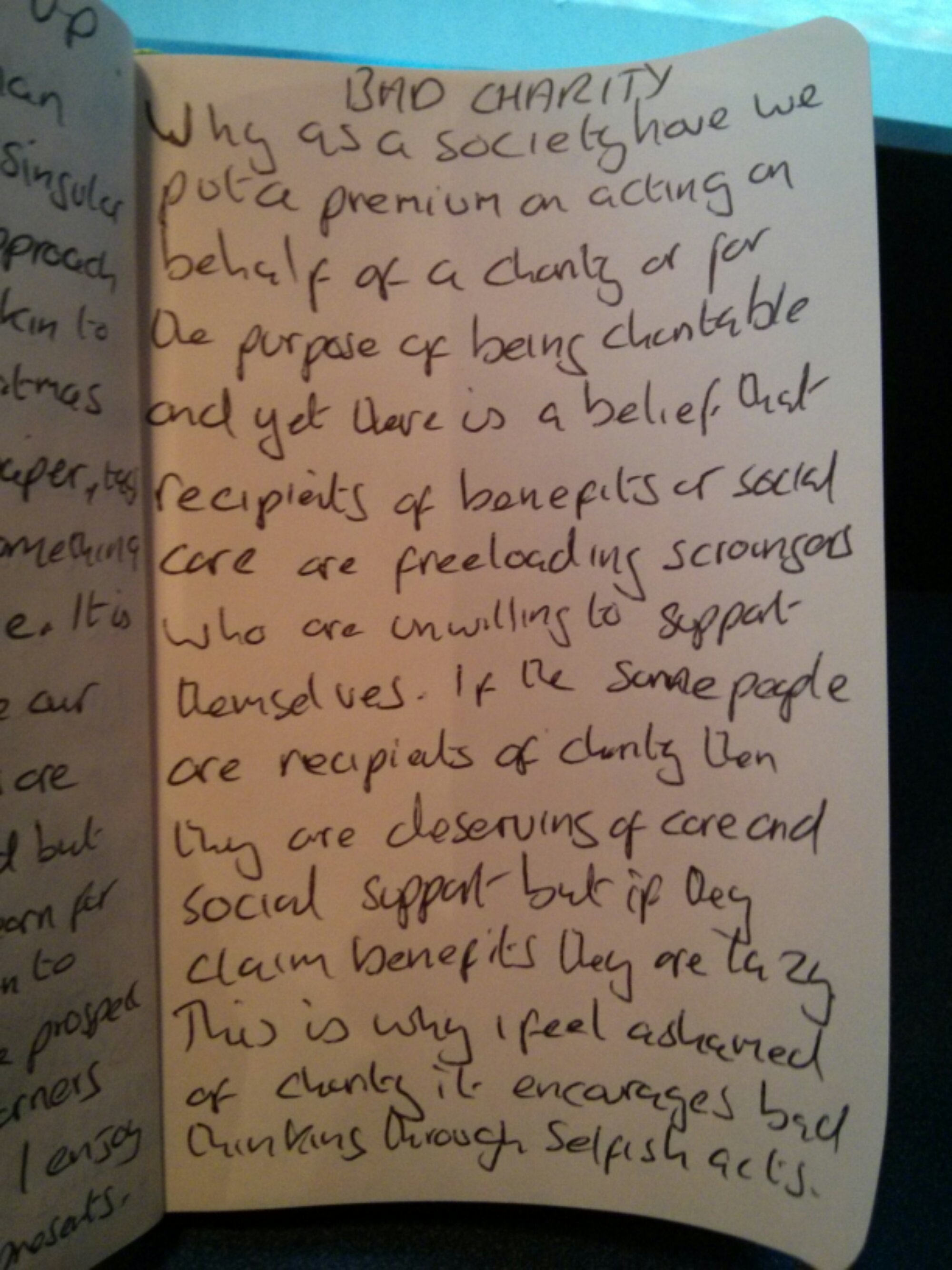 Tags: benefits, charity, scroungers